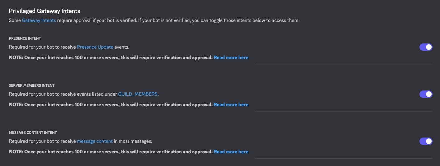 나중에 알게 된 사실인데 디스코드 개발자 포털에서 게이트웨이 관련 설정을 ON 해주지 않아서 생긴 문제였다. 하여간 보통 왜 안되지 싶으면 정말 어이없는 곳이 문제였던 경우가 많다.