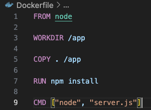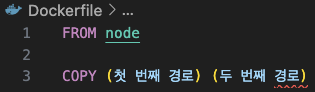 - 다음 단계로 도커에게 위의 노드 파일들이 이미지에 들어가야 한다는 것을 알려야 한다.
