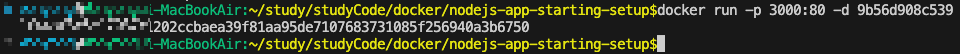 - -d 부가 플래그를 삽입하면 docker run이 detached 모드로 실행된다.