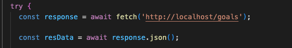 - 리액트의 app.js에 있는 api의 ip를 localhost에서 같은 네트워크에 있는 백엔드 서버 컨테이너 명인 'goals-backend'로 바꿔줬다.