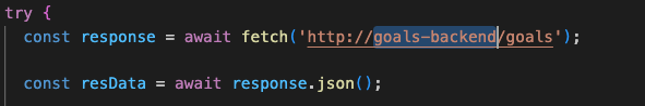 - 즉 내가 브라우저에서 localhost:3000으로 리액트 페이지에 접속했을 때는 브라우저에서 코드가 실행되기 때문에 goals-backend라는 이름의 컨테이너를 찾을 수 없는 것이다.