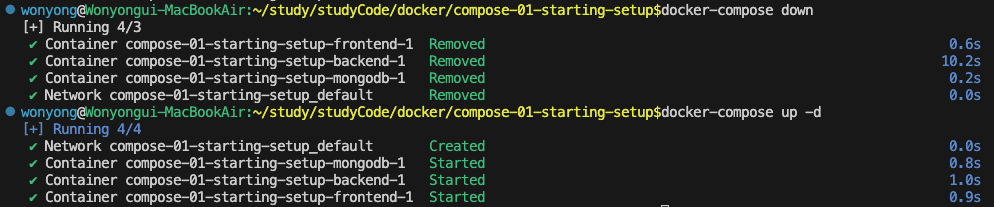 docker-compose down -v // 볼륨까지 제거