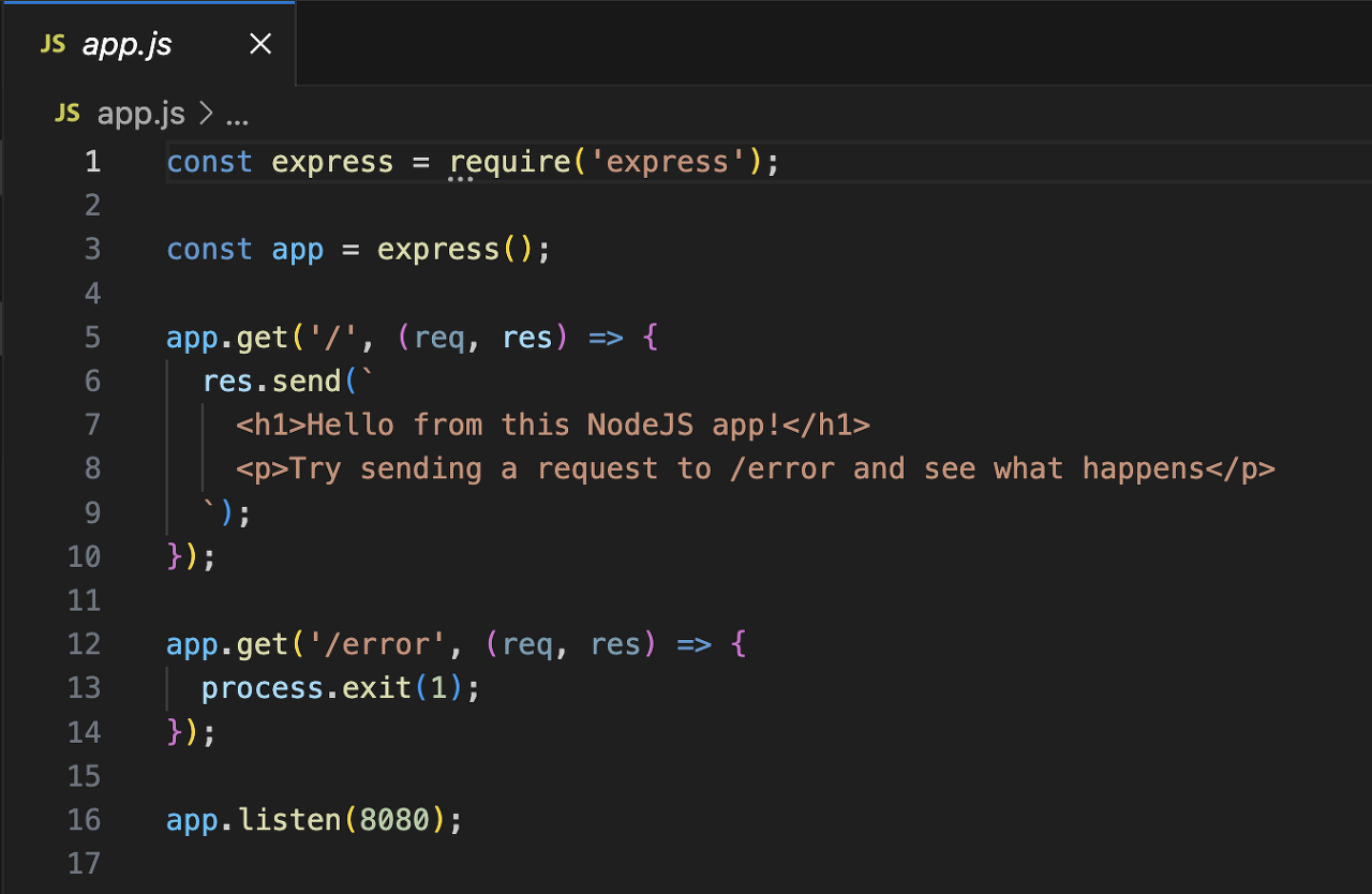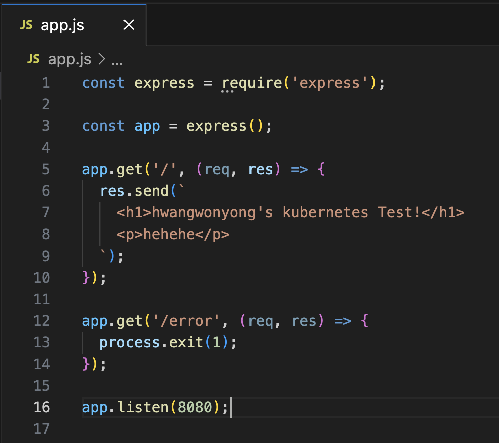 - 현재 실습에 사용 중인 노드 서버의 app.js 파일이다.