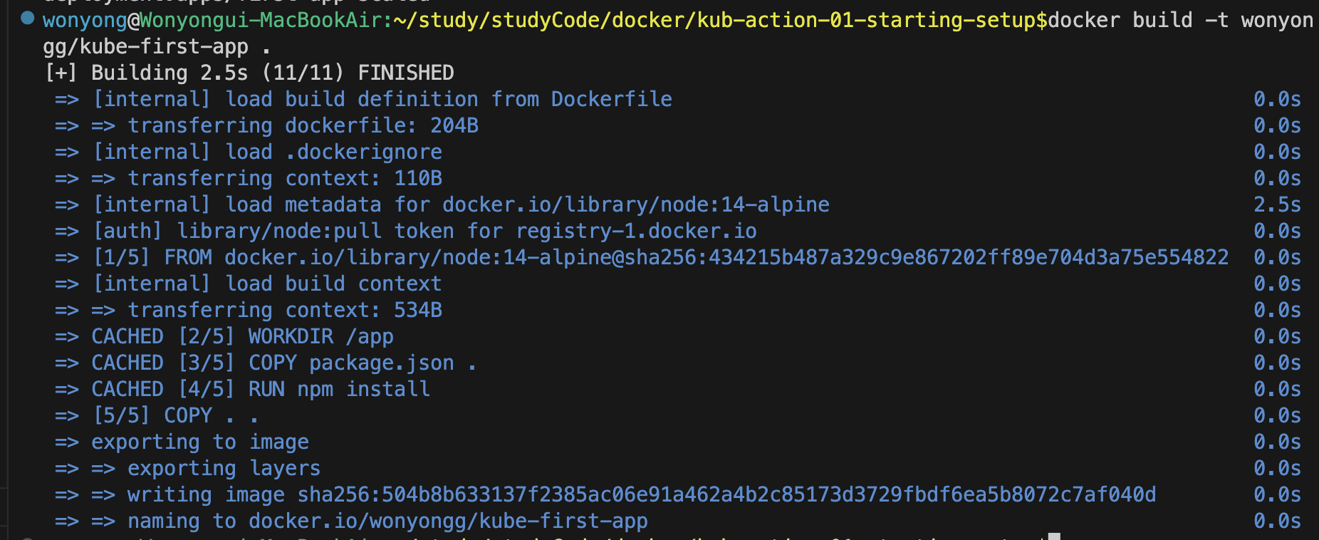 docker build -t wonyongg/kub-first-app:2 .