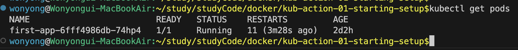 - 현재 파드는 한 개가 작동중에 있다.