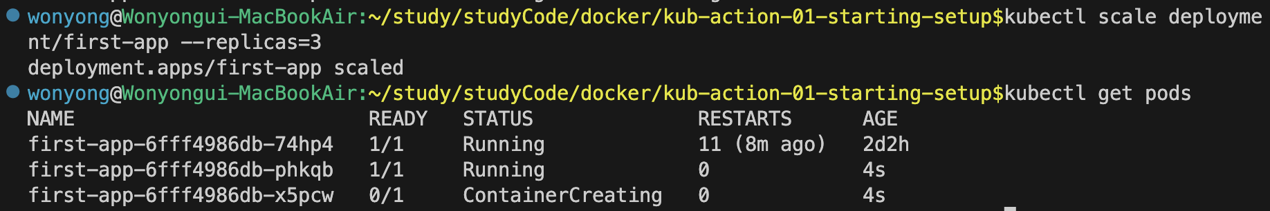 kubectl scale deployment/first-app --replicas=3