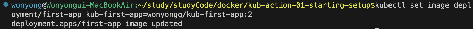 kubectl set image deployment/first-app kub-first-app=wonyongg/kub-first-app:2