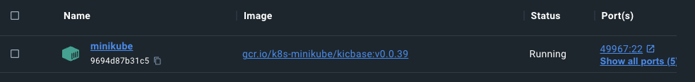 - 컨테이너 목록을 들어가보면 minikube가 만든 가상의 클러스터에 대한 컨테이너를 확인할 수 있다.