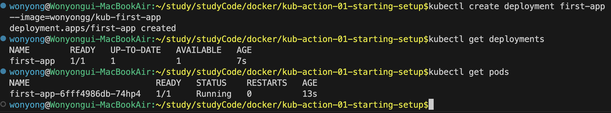 kubectl create deployment first-app --image=wonyongg/kub-first-app
