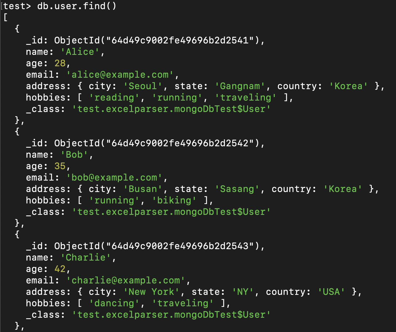 - 해당 컬렉션에서 조건에 맞는 문서를 조회한다.