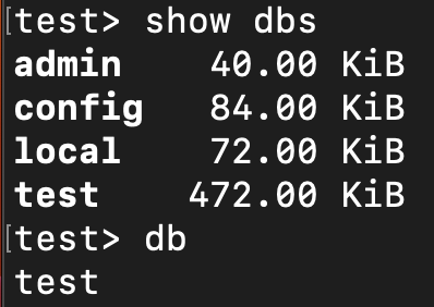 - mongoDB와 상호 작용할 수 있도록 db 안에 접근하는 명령어이다.