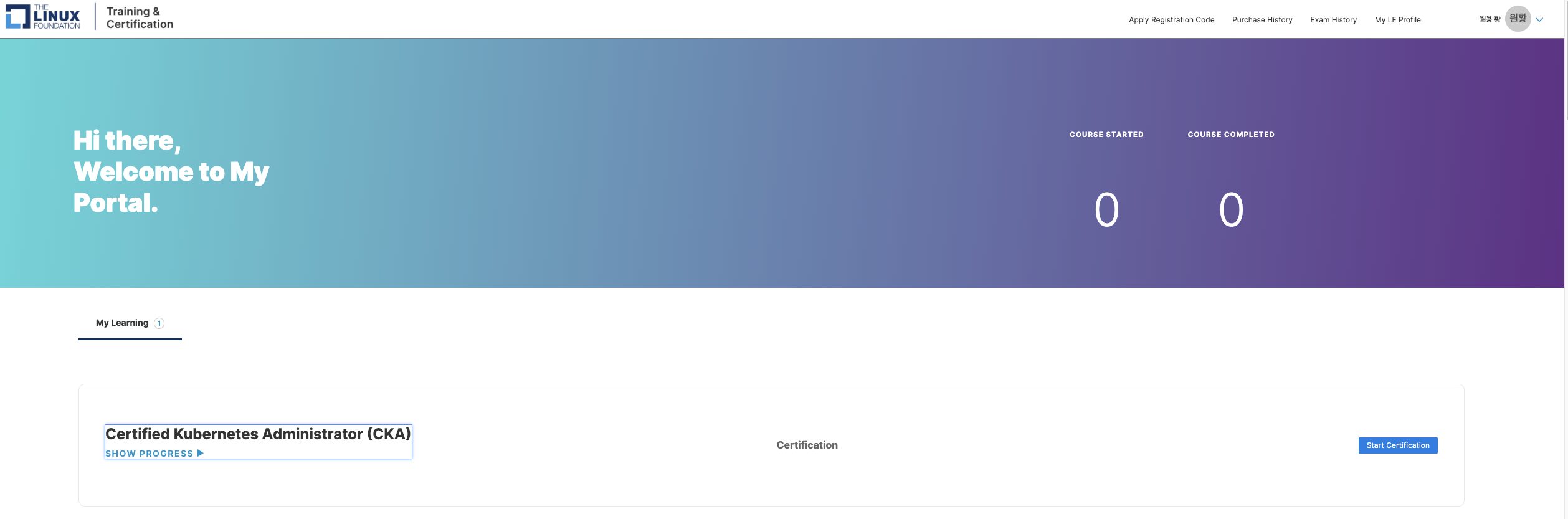 - 링크에 접속하면 리눅스 재단에서 운영하는 강의나 자격증 응시료 등이 크게 할인하고 있다. CKA는 강의 없이 응시만 할 경우 50% 할인을 받을 수 있다.