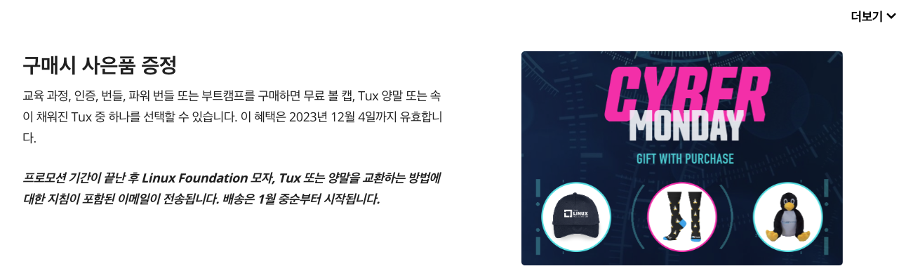 - 프로모션 기간 동안 구매를 하게 되면 모자, 양말, 리눅스의 마스코트인 턱스(Tux) 인형을 사은품으로 준다고 한다.