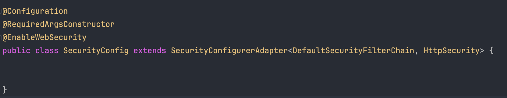 - ScurityConfigurerAdapter는 스프링 시큐리티의 설정을 정의할 때 사용하는 추상 클래스입니다.