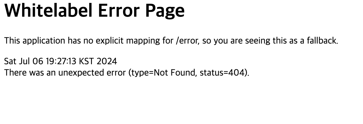 - 로그인을 하면 기본적인 스프링부트 에러페이지가 나옵니다.