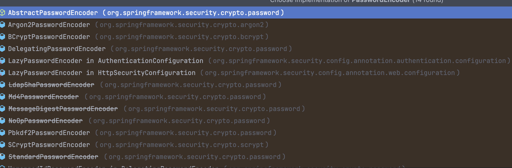 - 패스워드의 인코딩 방식으로 여러 종류의 구현체가 있는 것 같습니다. 여기서 우리는 무엇을 써야 할까요?