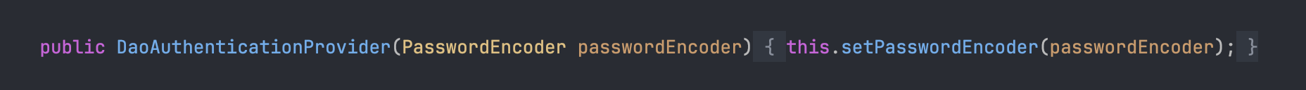 - 위의 정보만으로 미루어보면 DaoAuthenticationProvider는 최소한 PasswordEncoder와 UserDetailsService를 필요로 함을 알 수 있습니다.