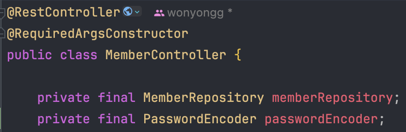 - 깔끔한 코드를 위해 @RequiredArgsConstructor를 사용했습니다.