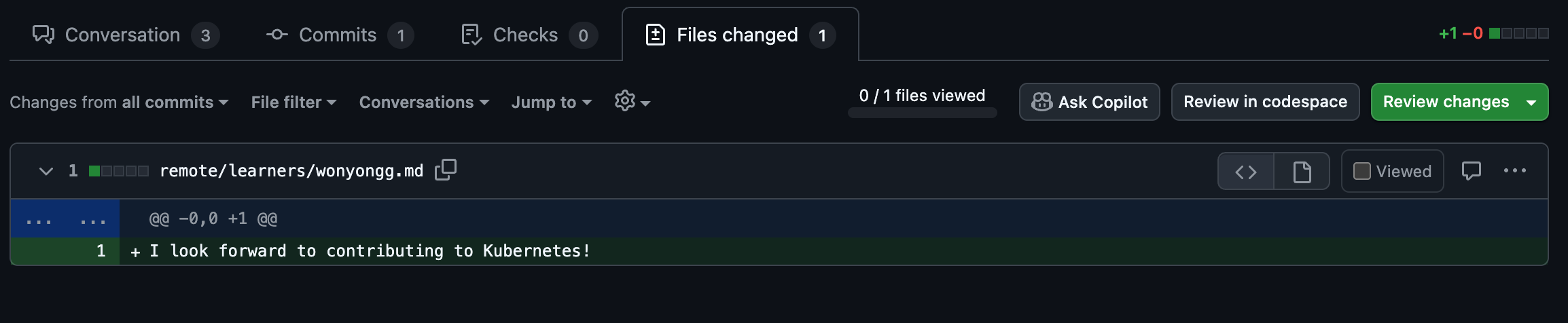 이곳은 신규 기여자들이 쿠버네티스 프로젝트의 프로세스에 익숙해지도록 풀 리퀘스트 제출을 연습하는 공간이다.